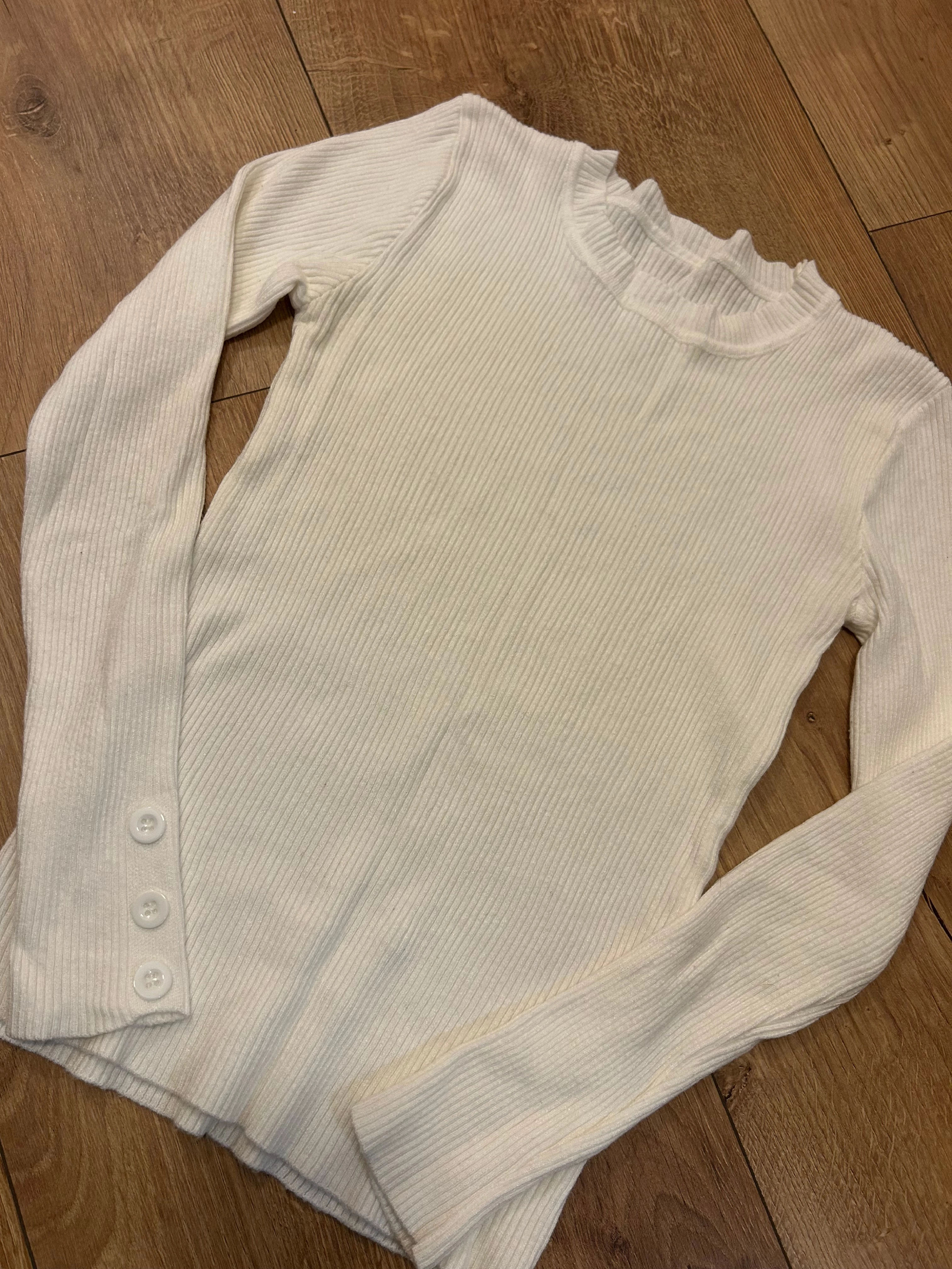 Fehér bordázott anyagú pulóver (XS-S)